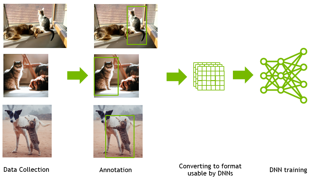 인지을 위한 심층 신경망을 학습시키는 일반적인 프로세스에는 데이터(대부분의 경우 이미지)의 수동 수집과 이러한 이미지에 주석을 다는 수동 프로세스가 포함된다. 그런 다음 이러한 이미지는 DNN이 사용할 수 있는 형식으로 변환된다. 그런 다음 DNN은 인식 작업을 위해 학습된다. 하이퍼 파라미터 조정 또는 네트워크 아키텍처 변경은 네트워크 성능을 최적화하기 위한 일반적인 단계입니다. 모델 성능을 분석하면 데이터 세트의 잠재적 변경으로 이어질 수 있지만, 수동 데이터 수집 및 주석의 또 다른 사이클이 필요할 수 있다. 이것은 비용이 많이 드는 수동 프로세스입니다.