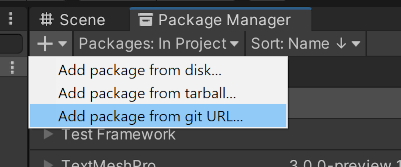 window→Package Manager→ 아래의 코드넣기 → ADD