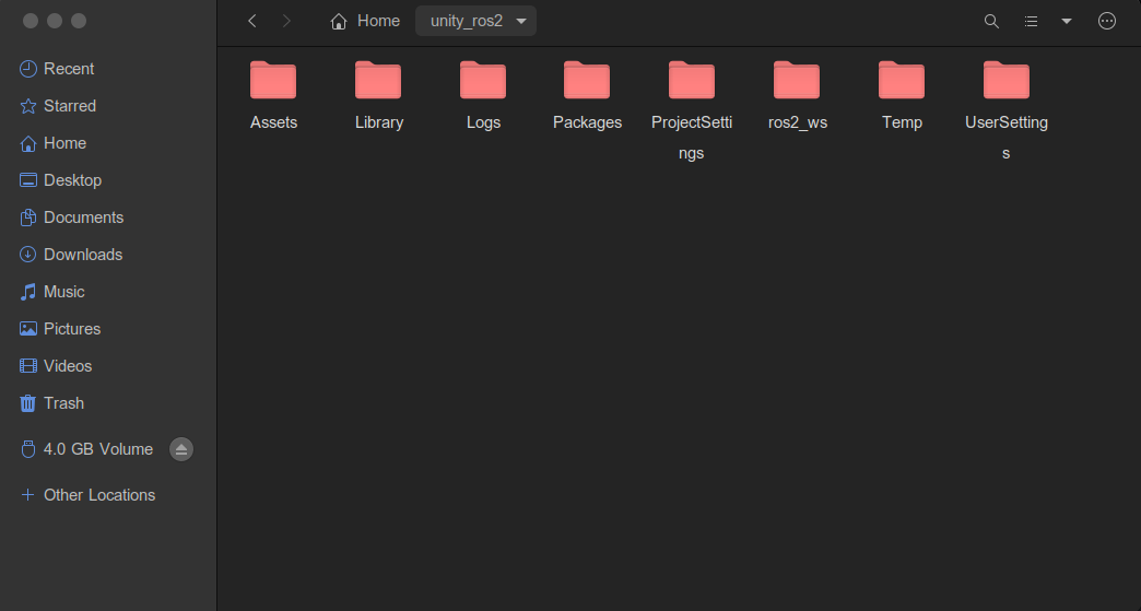 만든 유니티 패키지 안에 로스 워크스페이스 만들기(ros2_ws), 로스 워크스페이스 안에 src만들기